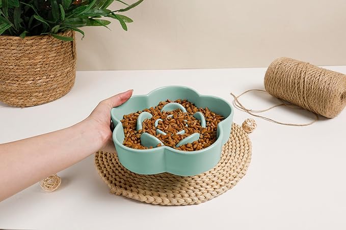 - Ceramic Material: Slow Feeder Bowl is made of food-grade ceramic, perfectly safe for your puppy to use. The ceramic texture has a smooth surface that is easy to clean, allowing for the simple removal of food residue. You can easily clean it. Microwave and dishwasher safe