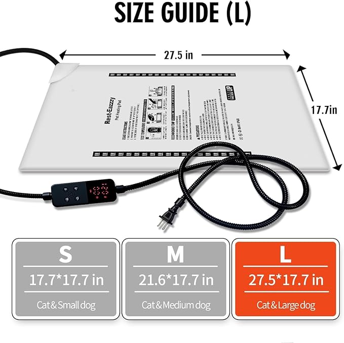 Rest-Eazzzy Heated Cat Bed with Removable Cover, 5 Level Timer & Temperature, Indoor Warming Mat for Cats & Dogs (Heat Pad, Pure-Grey, L)