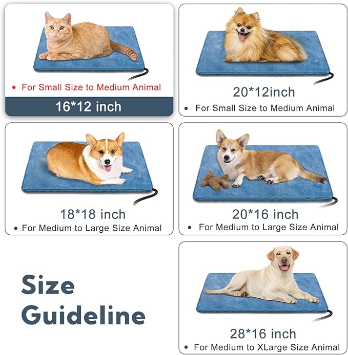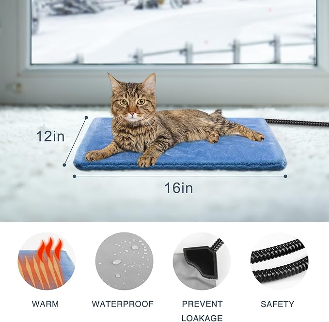 Heating Pad for Cats and Dogs Outdoor,Indoor Warming Cat Heating Pad, Waterproof,Chew Resistant Cord (Blue, 16 X 12)