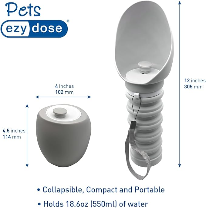 - PORTABLE & CONVENIENT: The EZY DOSE Collapsible Pet Water Bottle is perfect for travel, hiking, and outdoor adventures. Easily fits in your bag or attaches to your backpack with the included clip