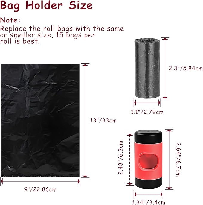 - PET WEIGHT LIMIT: Retractable leash with poop bag holder is equipped with durable and strong nylon strap, which can be extended up to 26ft/8m. Excellent for medium large dogs under 110lbs / 50kg. The bag holder can hold bag expanded size:9"*13"/22.86cm*33cm, rolled up size: 1.1"*2.3"/2.8cm*5.84cm or less than the size, 15 bags per roll.