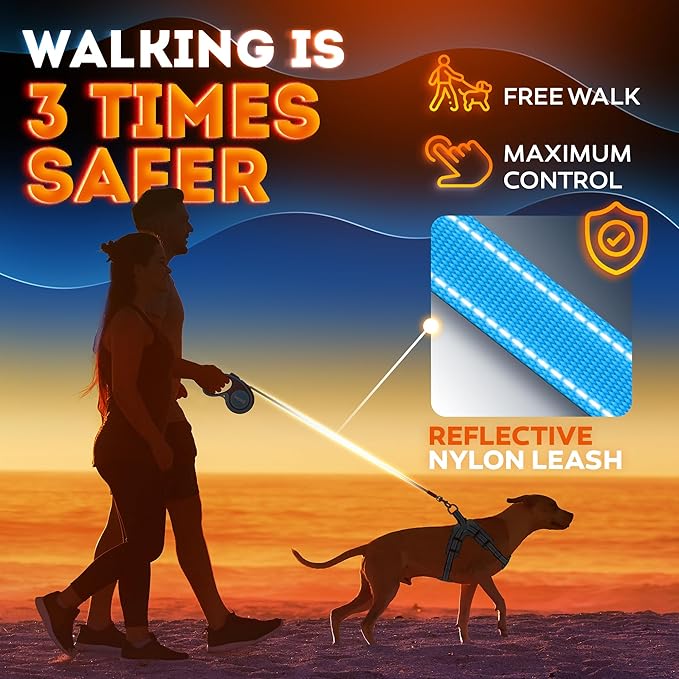 - The 16.4 ft nylon tape extends smoothly and resists wear, giving your dog space to explore while maintaining reliable braking and stable retraction for safe and controlled outdoor walking.