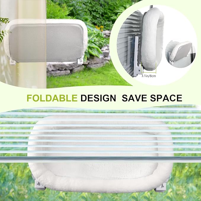 - Fold Easily and Cordless Cat Hammock: This is a foldable cat window perch. When not in use, you can easily fold it up without having to remove and reattach to the window, saving space in your home. The cordless design of the cat window hammock allows your cat to move freely on the hammock, jumping up and down to explore other places without any annoying cords tripping or obstructing them
