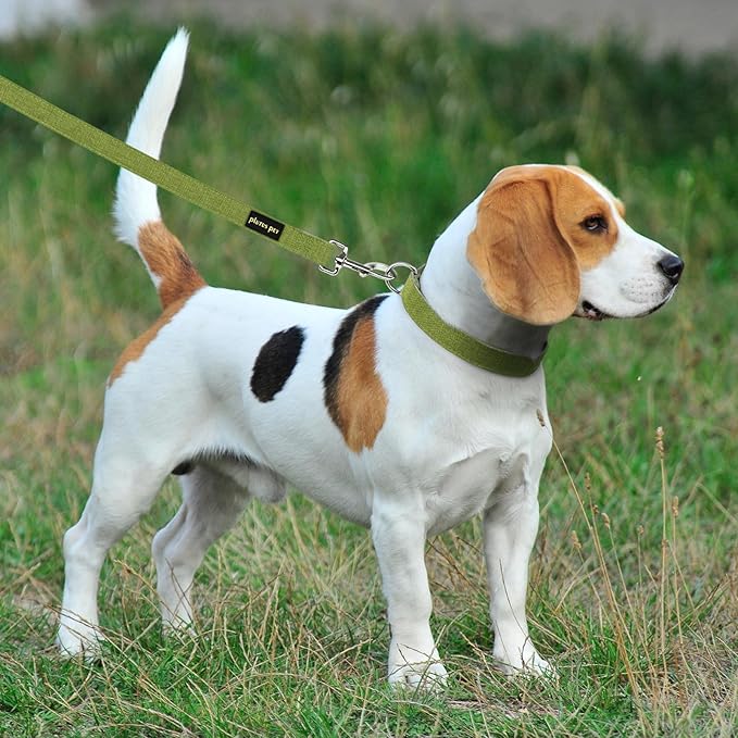 Plutus Pet Cotton Hemp Dog Collar and Leash Set, Adjustable Collar for Small, Medium, and Large Dogs, Heavy Duty and Soft on Skin, Green, XS