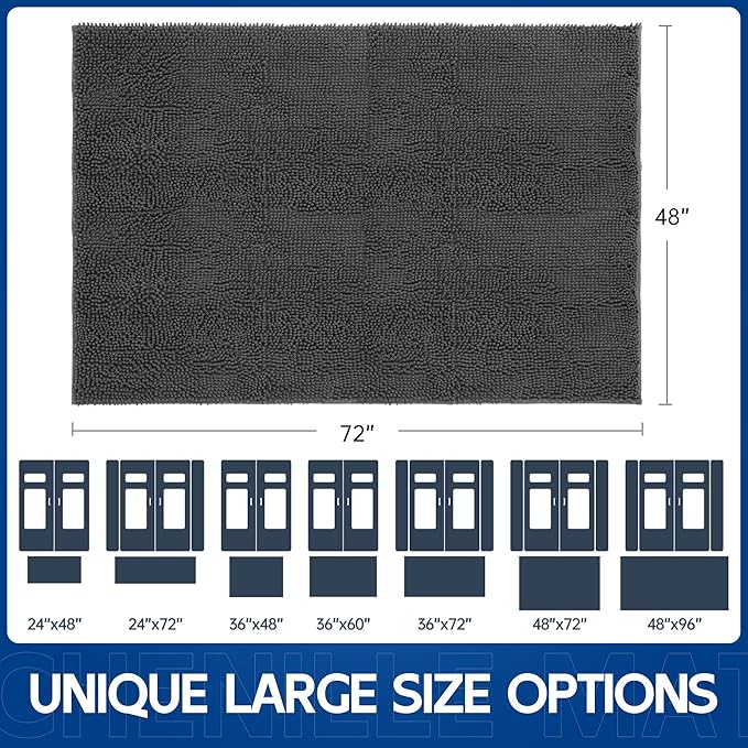 Chenille Absorbent Front Door Mat 72" x 48", Dog Door Mat for Muddy Paws, Trap Dirt Doormat, Mud Mat for Dogs, Washable Non Slip Outdoor Indoor Doormats for Entryway, Grey