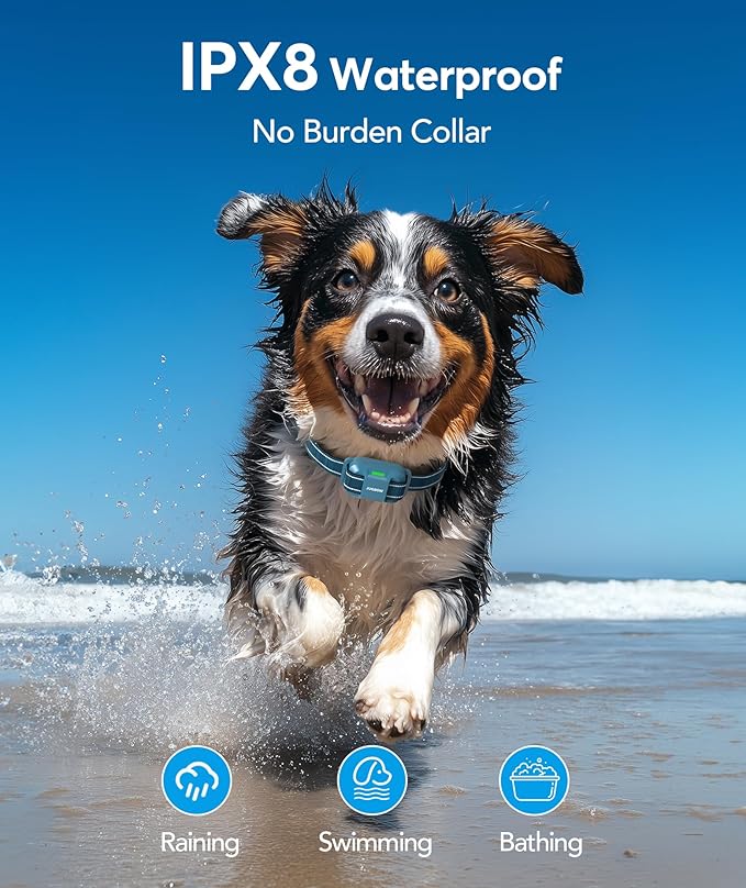 - 【IPX8 Waterproof Collar & Security Lock】The electric dog collar can be used in any weather and any condition thanks to the IPX8 waterproof design of the receiver. Instant response security on/off switch button allows you to carry it without any fear of accidental touch.