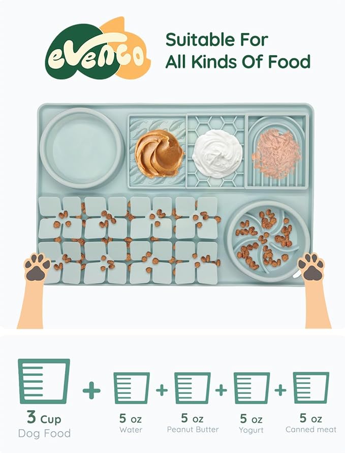 - UPGRADED 4-IN-1 FEEDER: Our multifunctional slow feeder dog bowls includes a slow-eating bowl, a water bowl, a snuffle area, and a 3-pattern lick area. Designed to cater to all your pet's needs in one innovative solution, it accommodates different food types and is ideal for most dogs' daily eating and play activities.