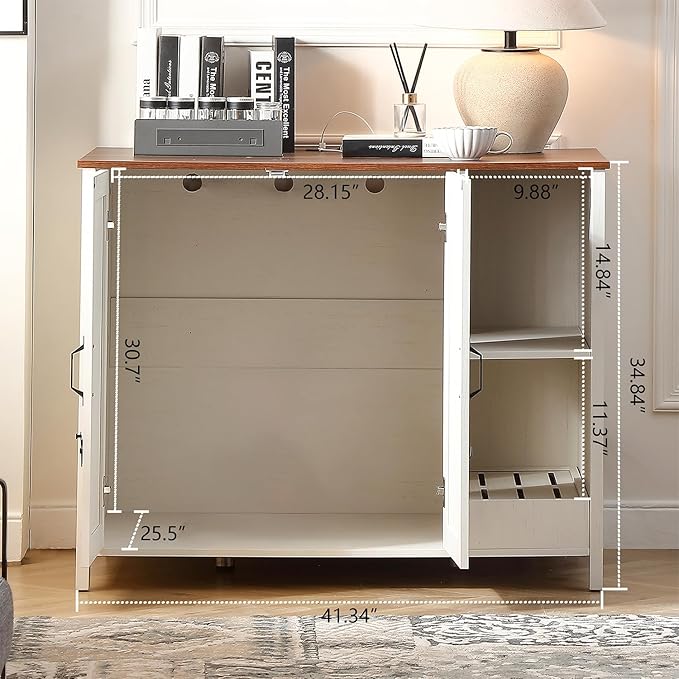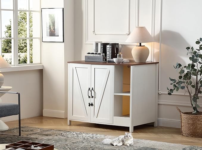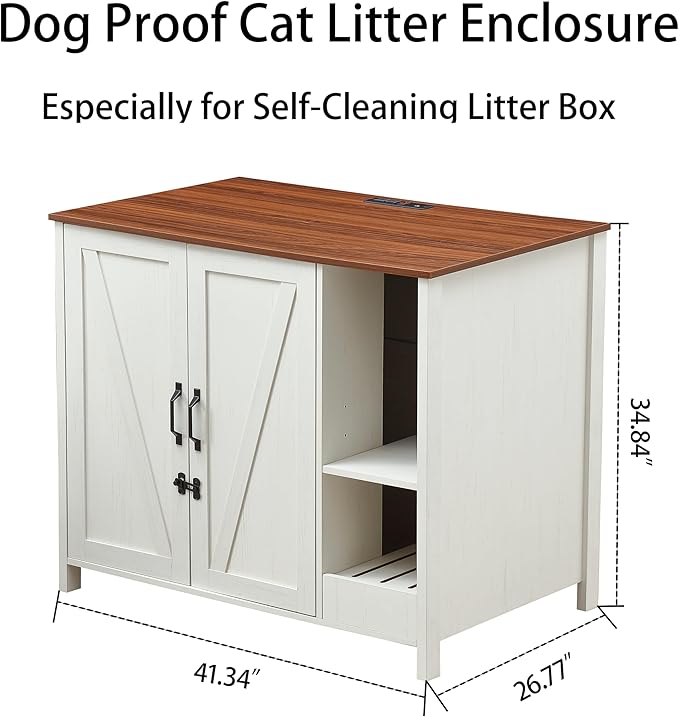 Large Cat Litter Enclosure with Litter Collector, Enclosure for self-Cleaning Litter Boxes,Adjustable Shelf for Dog Proof,Charging Station,Locks Added for cat,Cat House,Antique White