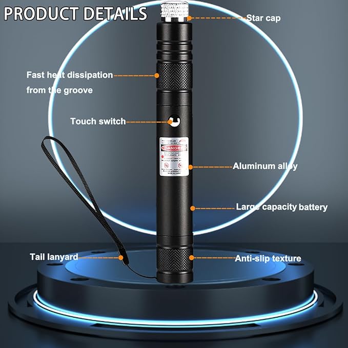 - [Long range and starlight effects] Straight Beam Mode: Remove the star cap from the high power laser pointer to project a straight, long distance red laser beam. Star Mode: Attach and rotate the star cap to create mesmerizing star patterns.