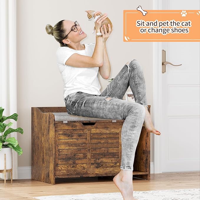 - 【Comfortable Cushion & Relaxation Area】Our cat litter box enclosure furniture comes with a soft, cushioned seating area on top. Enjoy spending quality time with your cat or let your feline friend nap peacefully. The cushion adds functionality, turning your hidden litter box furniture into a multi-purpose piece for any home.