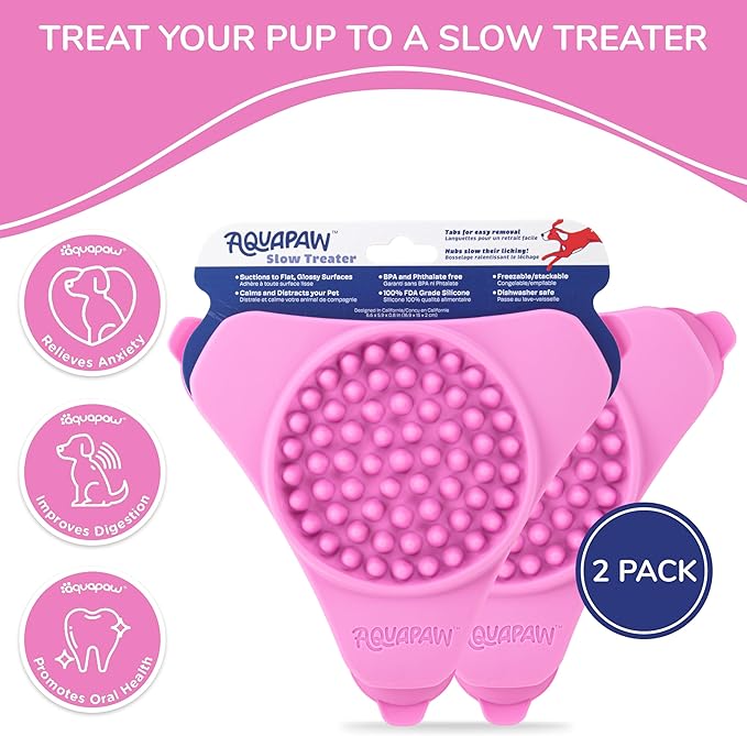 Aquapaw Lick Mat for Dogs 2-Pack, Suction Cup Dog Slow Feeder Pad & Licking Mat for Peanut Butter Treats – Calming Dog Bathing Aid, Stress Relief & Mental Stimulation for All Breeds - Pink