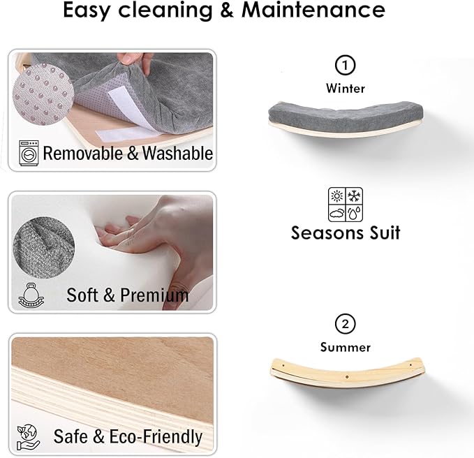 - 【Featuring Removable Soft Cushions】Our cat wall shelf is equipped with removable seat cushions that are soft and comfortable, providing maximum comfort for your cat while also protecting your furniture from natural scratches.