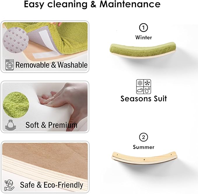 - 【Featuring Removable Soft Cushions】Our cat wall shelf is equipped with removable seat cushions that are soft and comfortable, providing maximum comfort for your cat while also protecting your furniture from natural scratches.
