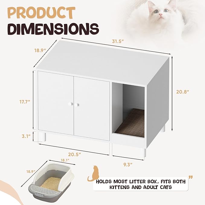 - MULTIPURPOSE: This multi-functional cat litter box can be used as a litter box enclosure or as a cat house. In addition, the stylish furniture style of the cat cabinet can also be used as a nightstand, side table, end table, cabinet, storage cabinet, etc