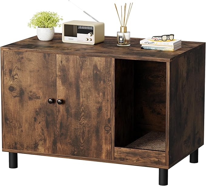 - STYLISH AND STURDY: This hidden litter furniture is both stylish and functional. The sleek design will fit in well with your furniture style. The wood material with waterproof and scratch-resistant paint is more durable