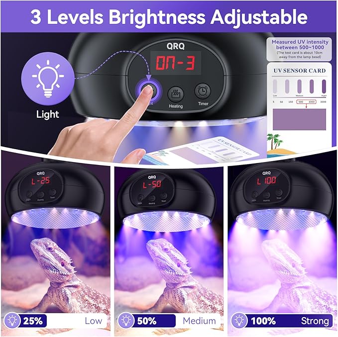 - 💡【3-Level Adjustable Brightness】QRQ chicken house heater lamp has 8 full-light bulbs, 12 UVA bulbs (365nm), and 4 UVB bulbs (UVA: 310nm + UVB: 395nm). We will provide you with an additional UV test card.The brightness of the lamp can be adjusted in three levels: low, medium and high. Providing your chicken house with an appropriate amount of UVAUVB ultraviolet rays can promote the absorption of chicken calcium, enhance immunity and resistance to infectious diseases, strengthen bones, and promote the healthy growth of chicks.