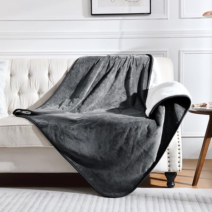 Waterproof Blanket for Bed Couch Sofa, Soft Liquid Pee Proof Pet Blanket for Dog Puppy Cat, Reversible Sherpa Fleece Furniture Protector (Dark Grey, 50x60 inches)