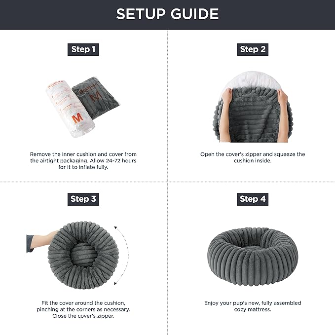 - Our calming donut bed isn't just cozy, but convenient. Your pet bed's clealiness is easy with a removable zip cover. This allows for unlimited machine-washable cycles. Simply wash and tumble dry for that hassle-free fresshness.