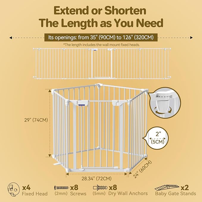 - Useful & Multipurpose: This extra wide pet fence can be folded to store, which is convenient for your travel and the gate can change any shape that you need. It comes in a variety of shapes and sizes to fit different openings, which are easy to create play yard for pets.
