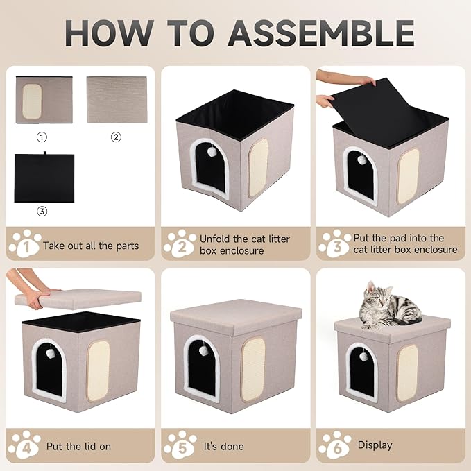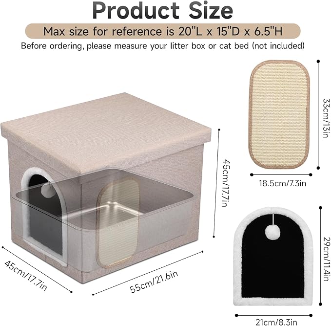 - 🐾【ODOR CONTROL & EASY CLEANING】: The enclosed design effectively reduces the spread of odors, ensuring the air in your home stays fresh, and reduces litter scatter. The interior is made of waterproof Oxford fabric and is very easy to wipe down and won't absorb urine.