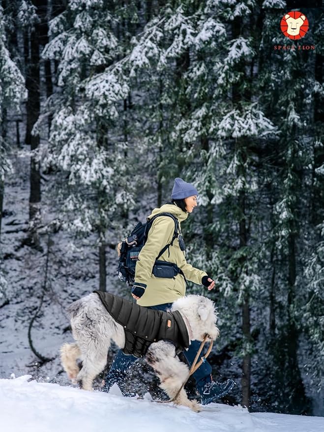 SPACE LION Dog Puffer Jacket, Down Winter Coat, Durable Outdoor Coat for Cold and Windy Conditions, Lightweight & Adjustable Fit Coats for Large Dogs,(Onyx Black, Size30/5XL)