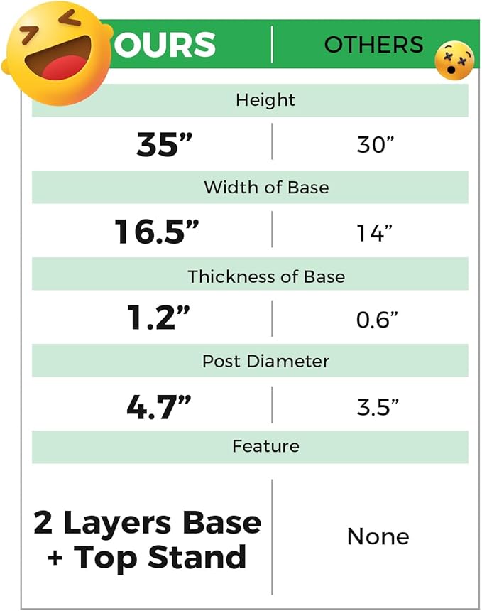 - Reinforced Base: With a 3cm thick wooden base sized 16.5 "x 16.5" and reinforced with extra wooden round layer, our exclusive design provides excellent stability for large cat sisal post. Provides a stable and safe place for your little furry friend to grab, play, and climb without tipping over