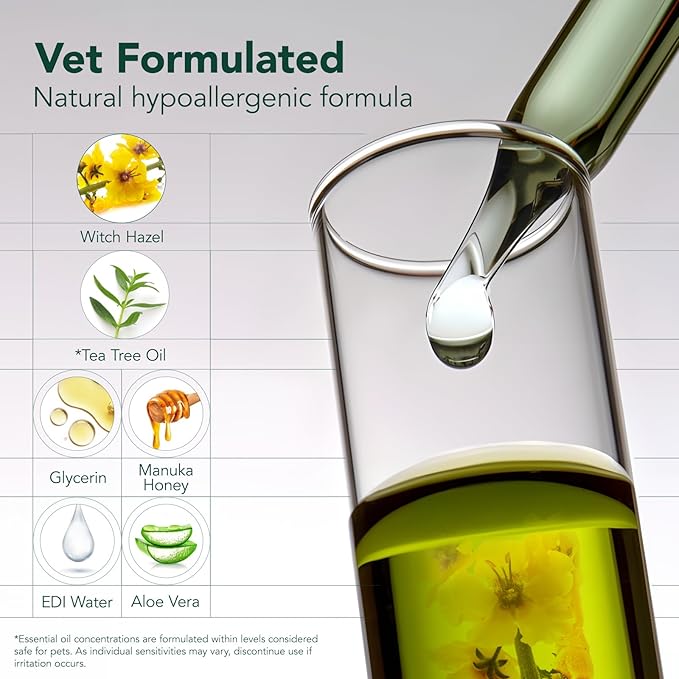 - HYPOALLERGENIC & NATURAL INGREDIENTS - SmileDenx Dog Ear Wipes feature a gentle, all-natural hypoallergenic formula made with EDI purified water, witch hazel extract, aloe vera extract, tea tree essential oil, manuka honey, lavender essential oil, and glycerin. These natural ingredients effectively clean your pet’s ear canal, relieve itching, prevent infections, help repair the skin barrier, strengthen resistance, and reduce the occurrence of additional ear issues.