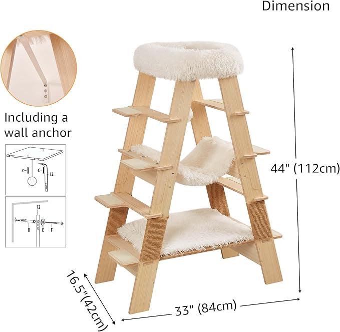 unipaws Pyramid Cat Tree, 5-Level Wooden Cat Ladder, Sturdy Tall Cat Climbing Tower with Cozy Hammock for Kittens and Indoor Cats