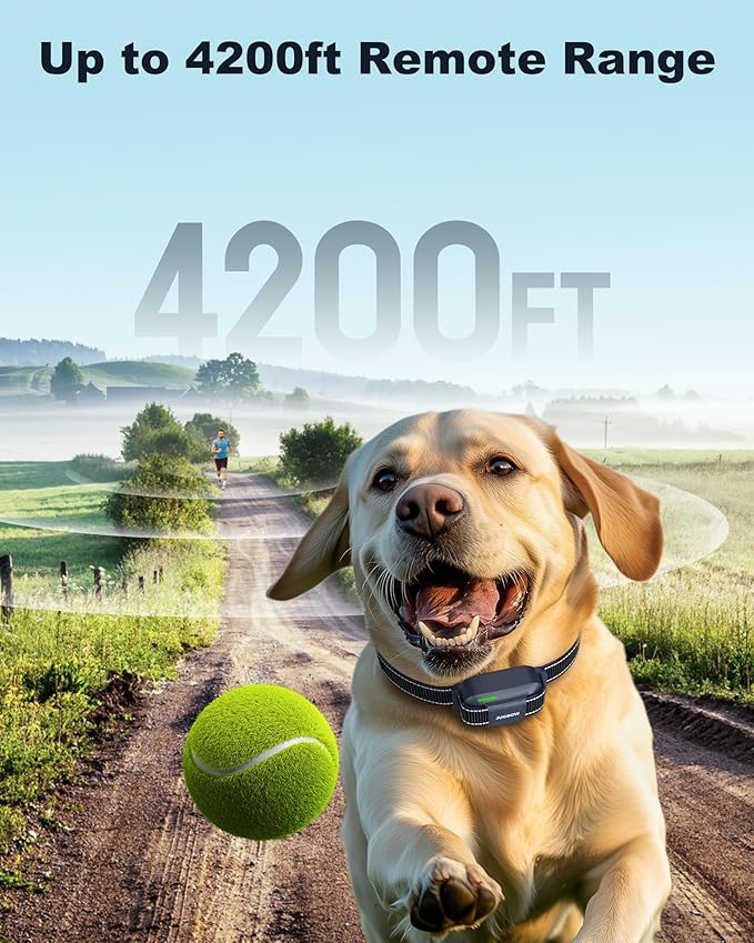 - 【4200FT Range & 2 Channel】The dog training collar covers up to 4200FT allowing the dog to roam farther, making it easy to train your dog indoors or outdoors. With dual-channel, one remote supports 2 receiver collars, and you can train 2 dogs at the same time! Besides, it has a memory function without resetting it.