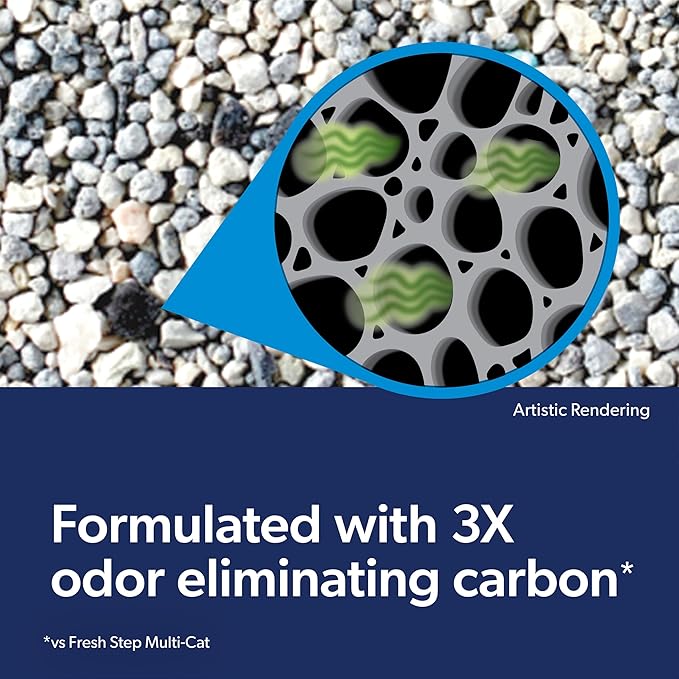 - 3X ODOR-ELIMINATING CARBON (1): Fresh Step clumping cat litter formulated with black carbon odor shield granules to trap and neutralize unwanted litter box smells