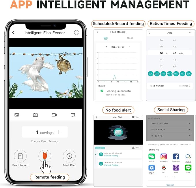- Smart Wifi and APP Remote Control: Who can help you take care of your lovely fish when you are busy at work or out on vacation? This is a question that every aquarium lover is thinking about. Now the hygger wifi automatic fish feeder can help you solve this trouble easily. You can make a personalized feeding schedule through the APP. So you can focus on your work or enjoy your holiday without any worry!