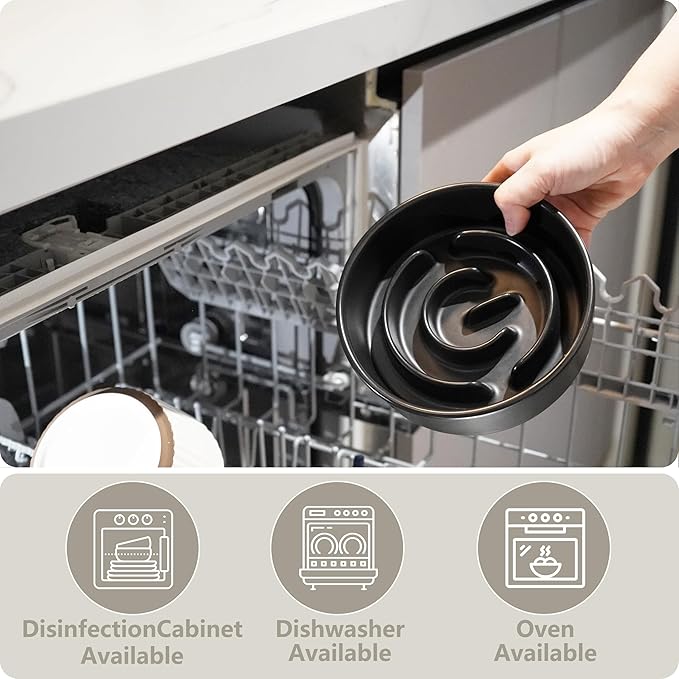 - 【Safe Sturdy Ceramic Material】Enjoy food safely and healthily — Plastic dog bowls are often bitten by dogs, resulting in the plastic being ingested by dogs, which is harmful to dogs' health. We prioritize your pet's health by using high-quality ceramic for our slow feeder dog bowls.