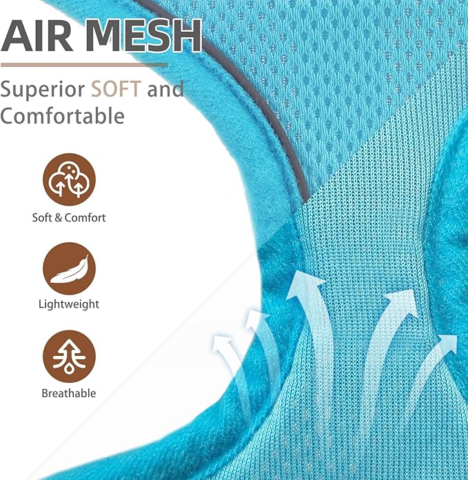 PUPTECK Soft Mesh Dog Harness and Leash Set Pet Puppy Cat Comfort Padded Vest No Pull Harnesses, Solid LightBlue, M