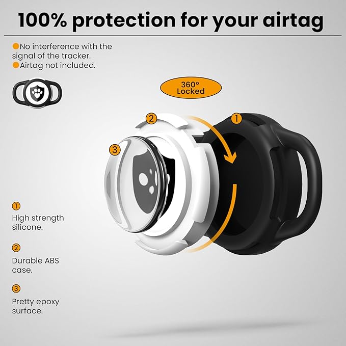 - 【Package Contents】 4x dog/cat collar air tag holder (air tags collar not included). Tip: After installing the front cover, adjust the rubber ring to ensure the four buttons fit tightly.