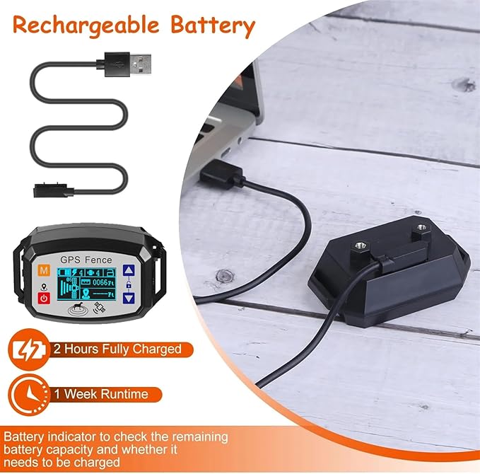 - 5. Built-in active antenna, 20 seconds fast satellite search, Position memory, no need to repeatedly set the origin, Fence radius 20-2000 meters, wide application, This product uses GPS satellite signal positioning. Please do not use it indoors.