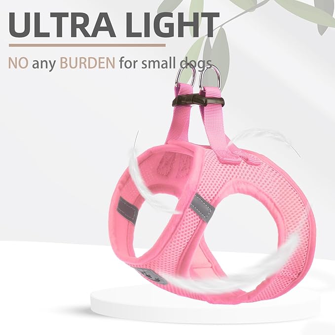 - COMFORTABLE MATERIAL, DAILY WALKING, FOUR SEASONS WEARING: - The harness is made of durable polyester, and it's adopted with an air-mesh design. The whole harness is very soft, lightweight, and breathable. Even if your dog wears it all day, he won't feel any discomfort. For daily walking or running, it is a very easy thing to do. Besides, this is a four seasons harness, it keeps the dog cool on hot days and keeps the dog warm on cold days