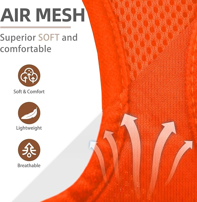 - COMFORTABLE MATERIAL, DAILY WALKING, FOUR SEASONS WEARING: - The harness is made of durable polyester, and it's adopted with an air-mesh design. The whole harness is very soft, lightweight, and breathable. Even if your dog wears it all day, he won't feel any discomfort. For daily walking or running, it is a very easy thing to do. Besides, this is a four seasons harness, it keeps the dog cool on hot days and keeps the dog warm on cold days