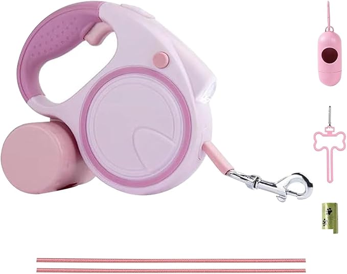 Best Dog Supplies | Pink Retractable Dog Leash with Light, Poop Bag Dispenser, Poop Bag Holder, 2 Elastic Ropes | Set of 4