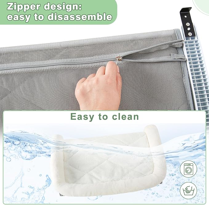 - Tool-Free Setup – No drilling or suction cups required! This cat bed features an upgraded hook-and-bracket system with adjustable clamps that fits most windowsills. Quick to set up, and easy to move between windows, bedsides, or cabinets