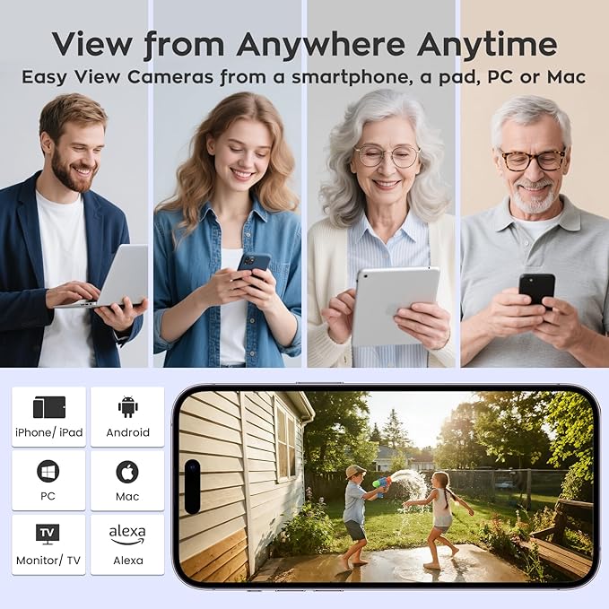 - 【Share with Families】The camera can be shared with unlimited number of users, and support 8 live viewers simultaneously. This helps you to share the cameras with your families.