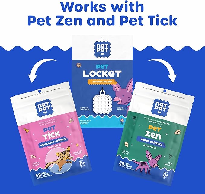 NATPAT Pet Zen Calming Patches + Pet Locket for Dogs and Cats - Non-Medicated Effective Stress Relief Patches with Safe, Durable Locket