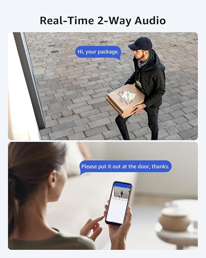 - Real-time Two-way Audio for Communication: Built-in mic and speaker add you extra layer of outdoor security camera coverage, enabling effortless interaction. This poe camera allows you to speak directly to visitors, courier, or intruders, enhancing both security and convenience