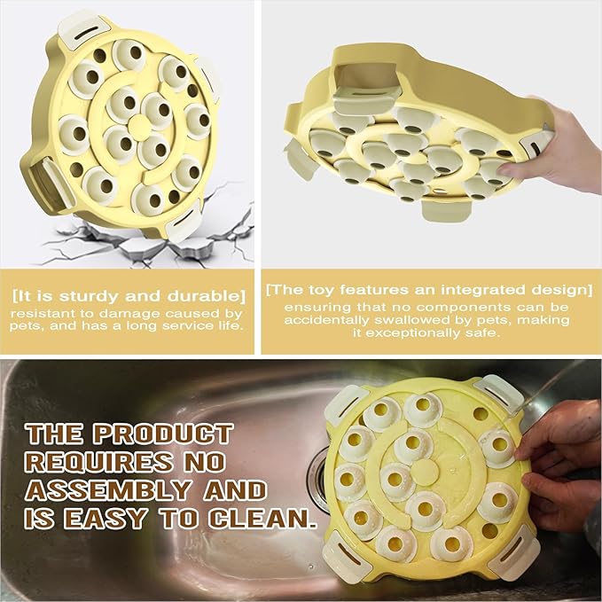- [Healthy Slow Feeding & Anxiety Relief]: More than just a toy, it doubles as a slow feeder to help dogs and cats eat at a healthier pace, improving digestion and preventing choking or overeating. By challenging your pet to work for their food, it provides beneficial mental stimulation that fights boredom and eases anxiety, keeping them calm and content. Non-slip pads on the bottom ensure the toy stays put on carpet, hardwood, or tile, so your furry friend can play safely anywhere.