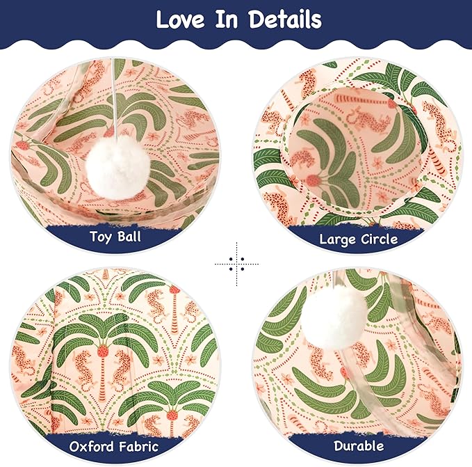 Tempcore Pet Cat Tunnel Tube Cat Toys 3 Way Collapsible, Cat Tunnels for Indoor Cats,Kitty Tunnel Bored Pet Toys Peek Hole Toy Ball Puppy, Kitty, Kitten, Rabbit Khaki Coconut Tree