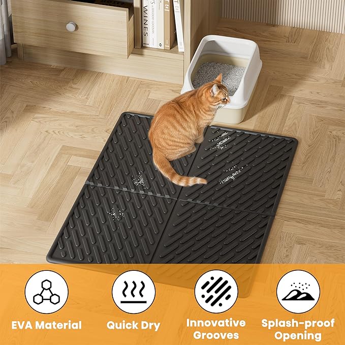 - Waterproof & Ultra-Soft Mat : Our litter mat for cat is durable and designed to resist cat's scratching, soft EVA litter box mat providing comfortable support for cat's every step. 100% waterproof material for leak protection, keeping your floors safe from water and urine. Long term use for active cats.