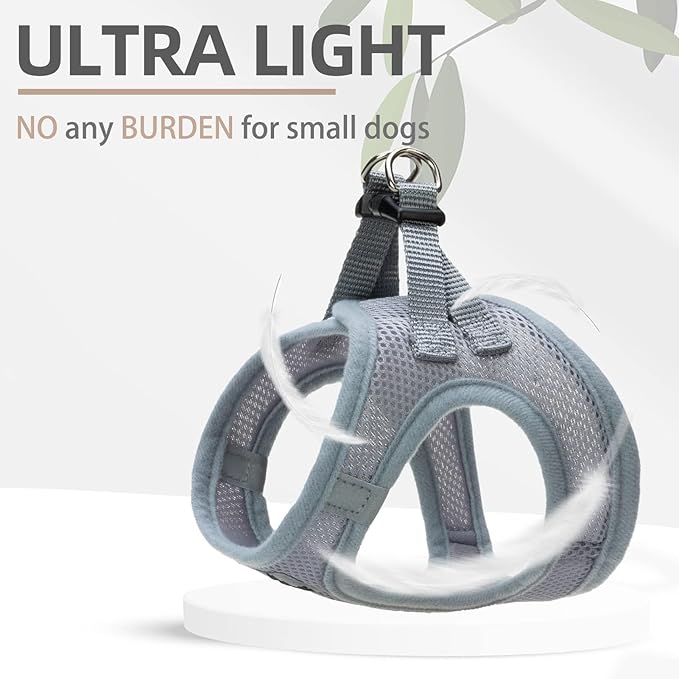 - COMFORTABLE MATERIAL, DAILY WALKING, FOUR SEASONS WEARING: The harness is made of durable polyester, and it's adopted with an air-mesh design. The whole harness is very soft, lightweight, and breathable. Even if your dog wears it all day, he won't feel any discomfort. For daily walking or running, it is a very easy thing to do. Besides, this is a four seasons harness, it keeps the dog cool on hot days and keeps the dog warm on cold days