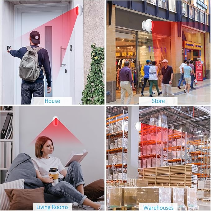 - Easy Installation: Plug-and-play receiver; motion sensors attach via double-sided tape (wall-friendly) or screws (sturdy). Flexible installation options balance convenience and durability