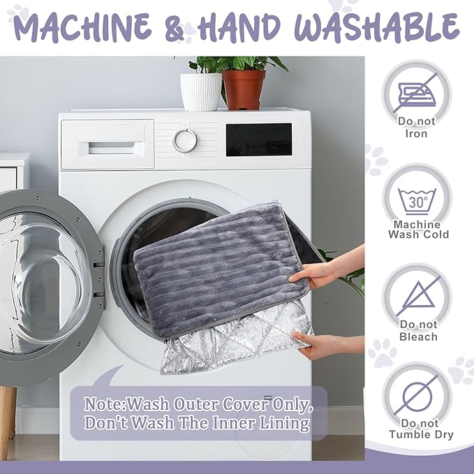 - EASY TO CLEAN & CARE: our thermal pet pad is designed with a removable zippered cover that is machine washable and dryer friendly for easy cleaning, retain its shape through multiple wash cycles. Note: wash the cover only