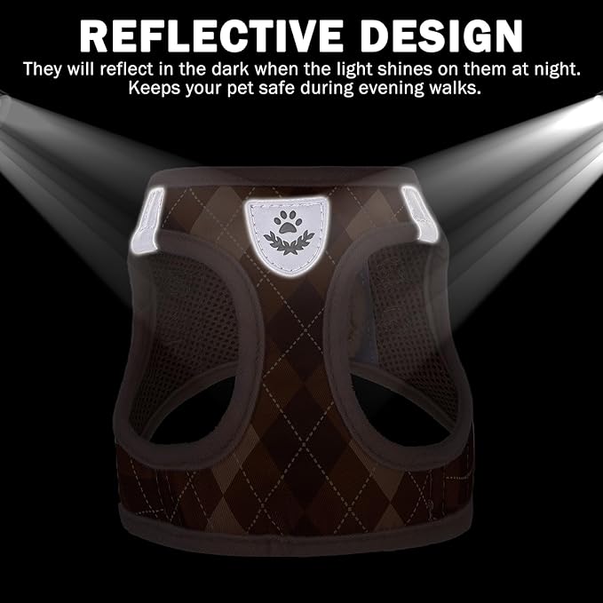 - REFLECTIVE DESIGN & CLASSIC CHECKERED PATTERN: With reflective tape on both sides of the puppy harness and a reflective logo in the centre, you'll be safer when taking your dog for a walk at night! In addition, the diagonal plaid pattern looks both classic and stylish and will never go out of style
