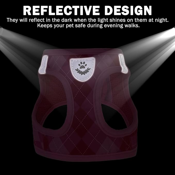 - REFLECTIVE DESIGN & CLASSIC CHECKERED PATTERN: With reflective tape on both sides of the puppy harness and a reflective logo in the centre, you'll be safer when taking your dog for a walk at night! In addition, the diagonal plaid pattern looks both classic and stylish and will never go out of style